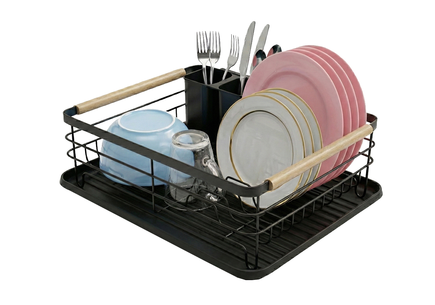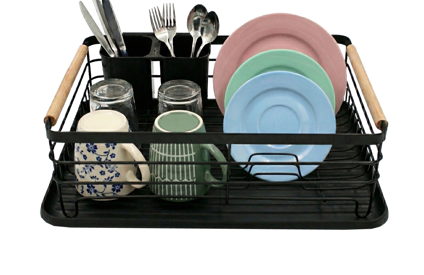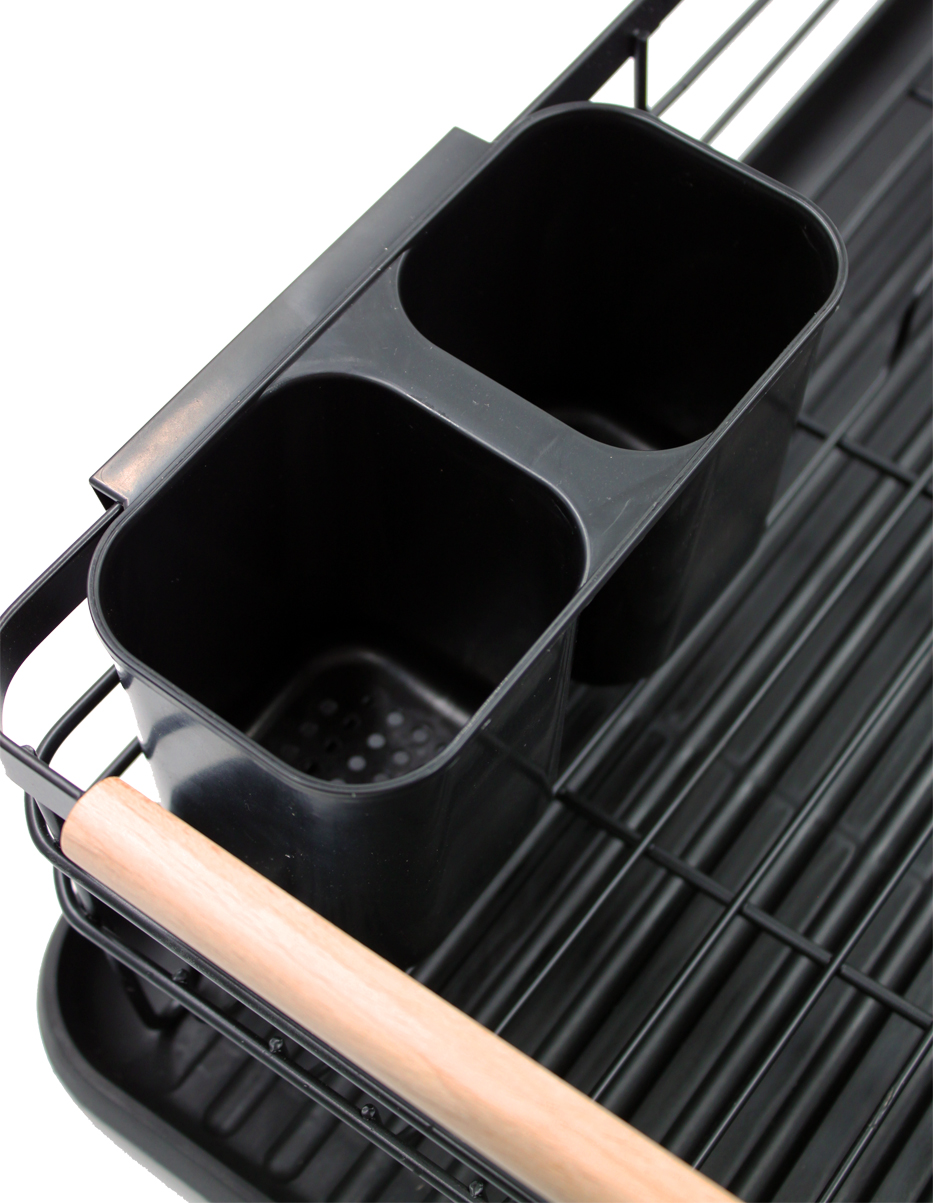 This isn’t just an ordinary drainer you want to tuck away in a cupboard when guests arrive. It’s a stylish addition to your interior. The deep, matte black metal combined with natural bamboo handles creates a perfect combination for kitchens in loft, Scandinavian, or modern minimalism styles. The bamboo handles not only look beautiful but also make the drainer easy to carry, even when full.