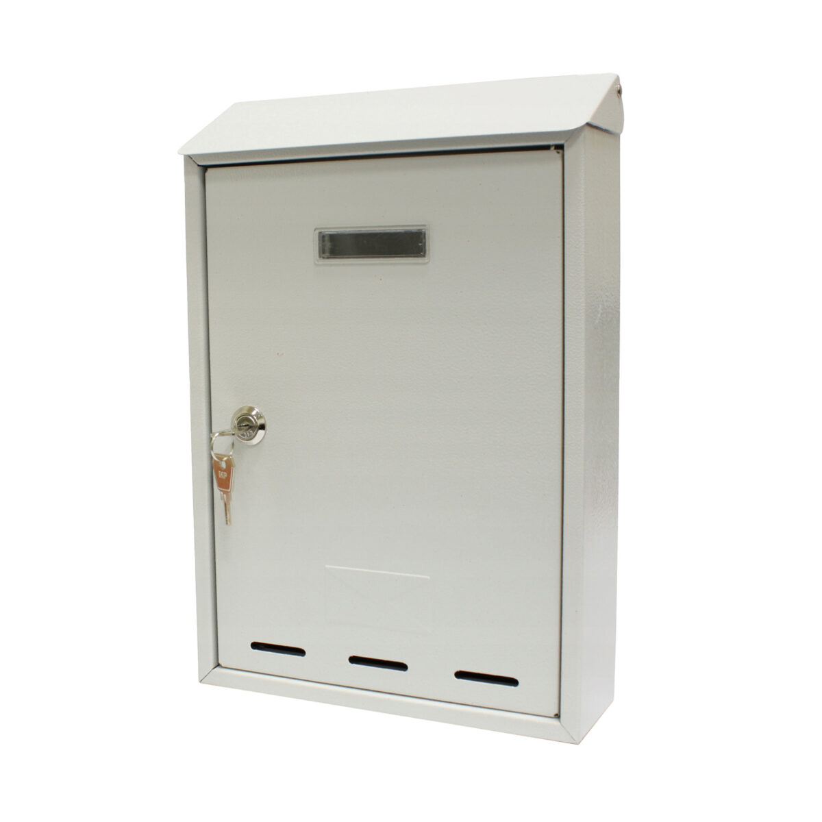 Letterbox with the dimensions 330x220x70mm. Made of heavy steel sheet coated with epoxy resin, in grey colour.